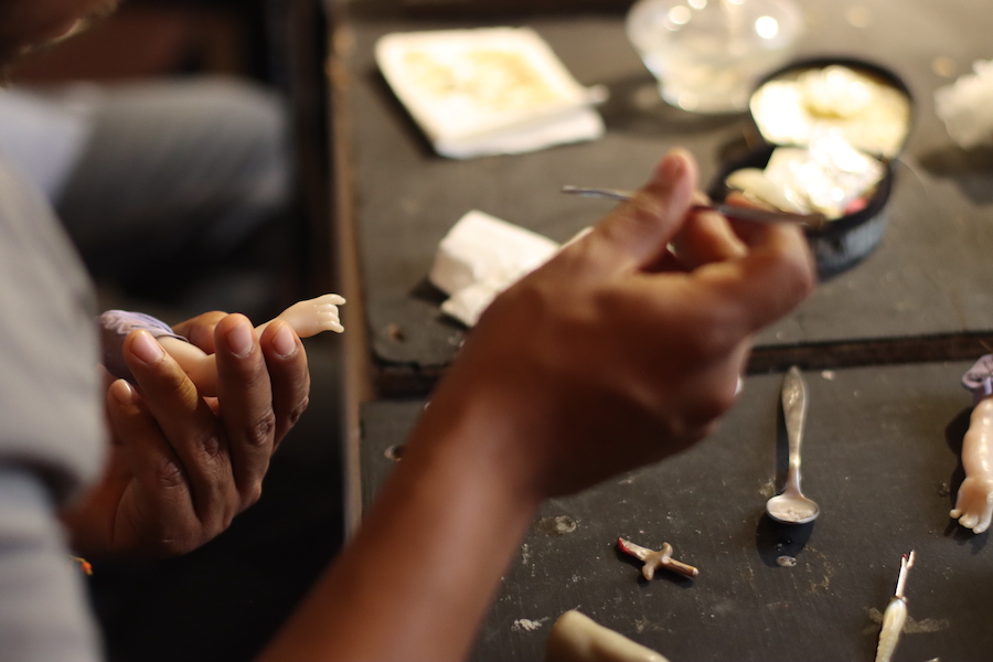 El proceso de elaboración es completamente artesanal. La cera se limpia lentamente al calor, se filtra para eliminar impurezas y se mezcla, por lo general, con pigmentos naturales. Luego comienza el trabajo de modelado: rostros diminutos, ojos de vidrio, manos delicadas, pliegues de túnicas, cabellos y barbas cuya vida emerge gracias a la paciencia.