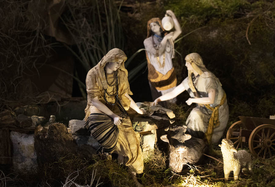 Las figuras se realizan mediante moldes parciales que después se intervienen manualmente. El verdadero valor del artesano aparece en ese momento: cada expresión, cada inclinación de la cabeza se termina a mano. Ninguna figura es completamente idéntica a otra.