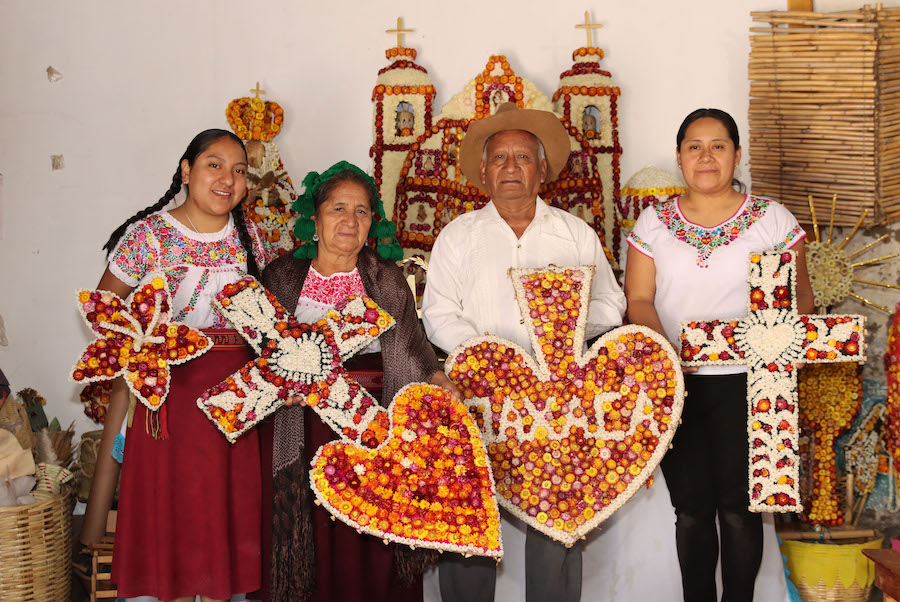El arraigo de Francisca Sánchez en la flor inmortal es apasionante; tenía 19 años cuando inició este camino que continúa a sus 69, y que ha de prolongarse por medio de sus siete hijos y sus bisnietos. El oficio lo aprendió de la familia de su esposo, el maestro Israel Gerardo Raymundo Cornelio, específicamente de los abuelos maternos de este, quienes elaboraban, principalmente, arreglos florales e imágenes para bodas y mayordomías. Para la maestra Francisca, casarse con él fue también contraer nupcias con este arte y amarlo. Ella misma describe el oficio de la flor inmortal como “un amor del pueblo, un amor celestial, un amor de Dios”, porque “nace del alma, del espíritu, del corazón” a partir de una conexión especial con las flores y su significado ritual y espiritual. Ella no sabe leer ni escribir, por eso tiene la certeza de que su habilidad artística y las palabras con las que bendice su trabajo y a las personas que lo valoran vienen de lo alto.