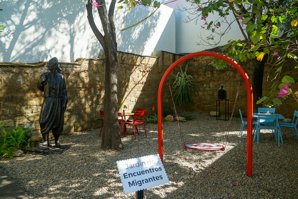 En el mismo evento se inauguró nuestro Jardín de Encuentros Migrantes, un espacio ideal para la contemplación y la lectura. Por medio de los libros de Gibran Khalil Gibran —que se encuentran disponibles al público— podrás viajar entre un continente y otro, acompañado por dos esculturas de gran tamaño. El emigrante libanés, pieza creada por el artista libanés Ramis Barquet, rinde homenaje a quienes llegaron a México en busca de una vida mejor. La segunda escultura, del maestro oaxaqueño Alejandro Santiago, simboliza a los migrantes mexicanos que mueren en su intento por cruzar la frontera norte del país; atiende la ausencia de quienes ya no están y evoca el deseo de sus seres queridos por mantenerlos presentes.